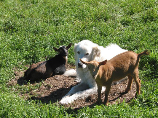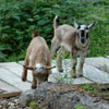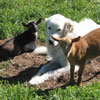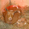 We let our does raise their own babies because we believe their mothers are most capable about teaching them about what it means to be a goat. Some people believe that dam-raised kids are shy or wild but we know that that they get enough human interaction to become wonderfully friendly. Our biggest problem with the little ones born here is that they all try to jump into our laps at once and there isn't enough room!